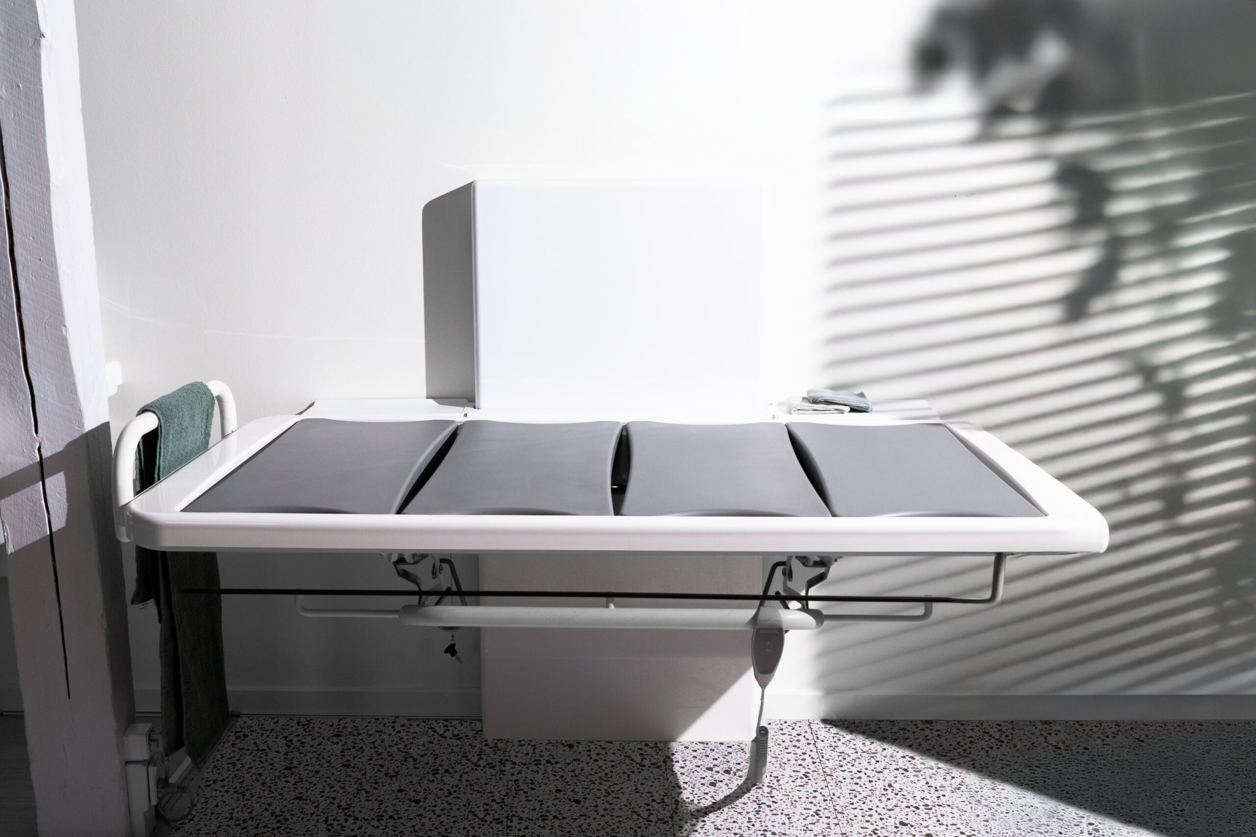 The adult sized changing tables provide space-efficient, easy-to-use changing solutions with both wall-mounted and freestanding models. Both feature electric height adjustment for enhanced safety and comfort, facilitating easy personal care.