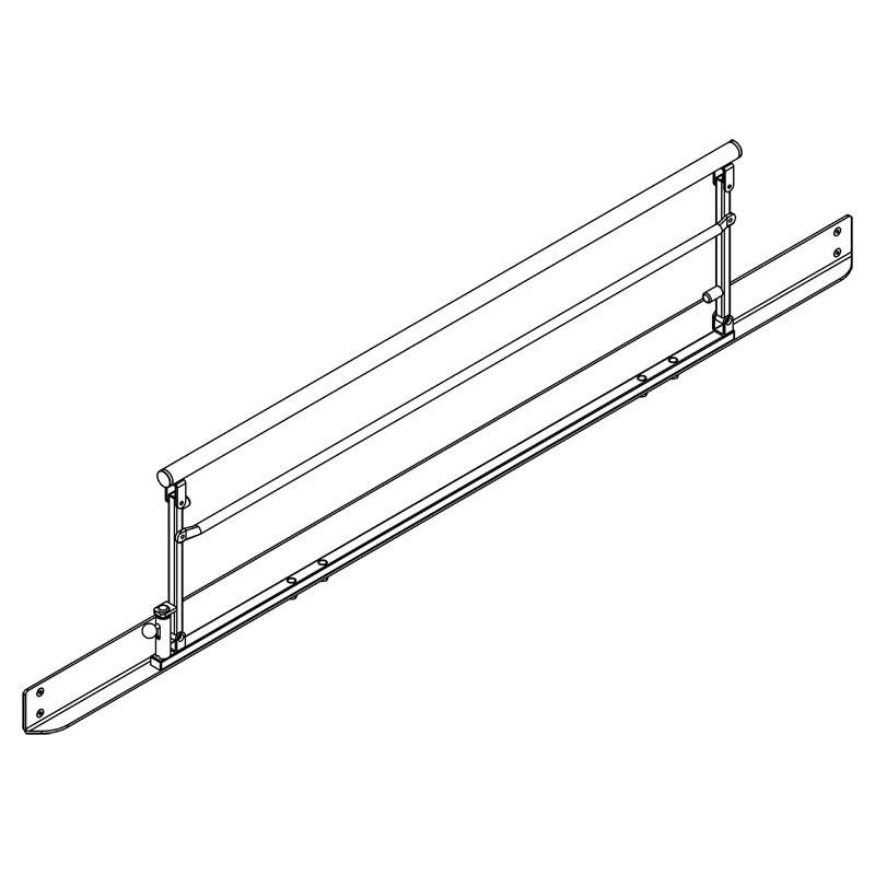 A folding bed guard is available as an option. It is mounted on the side of the bathtub by means of an angular fitting. Note that the bed guard is identical for all bathtubs and that the angular fitting has different lengths to suit the specific bathtub.