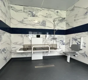 The room was fully equipped with high-quality specialist equipment and ancillary items, and registered as a Changing Places facility on the official map. Installed equipment includes a Ropox adult-size changing bench, H-frame ceiling hoist, Ropox height-adjustable wash basin, DocM toilet, privacy screen, and a full range of ancillary items. Every feature was chosen to ensure safety, dignity, and ease of use for both users and carers.